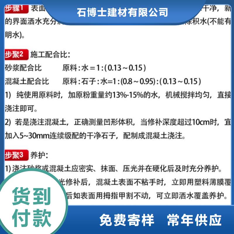 1、施工方便:具有良好的施工和易性能。施工时无需振捣,在现场加水搅拌即可使用;